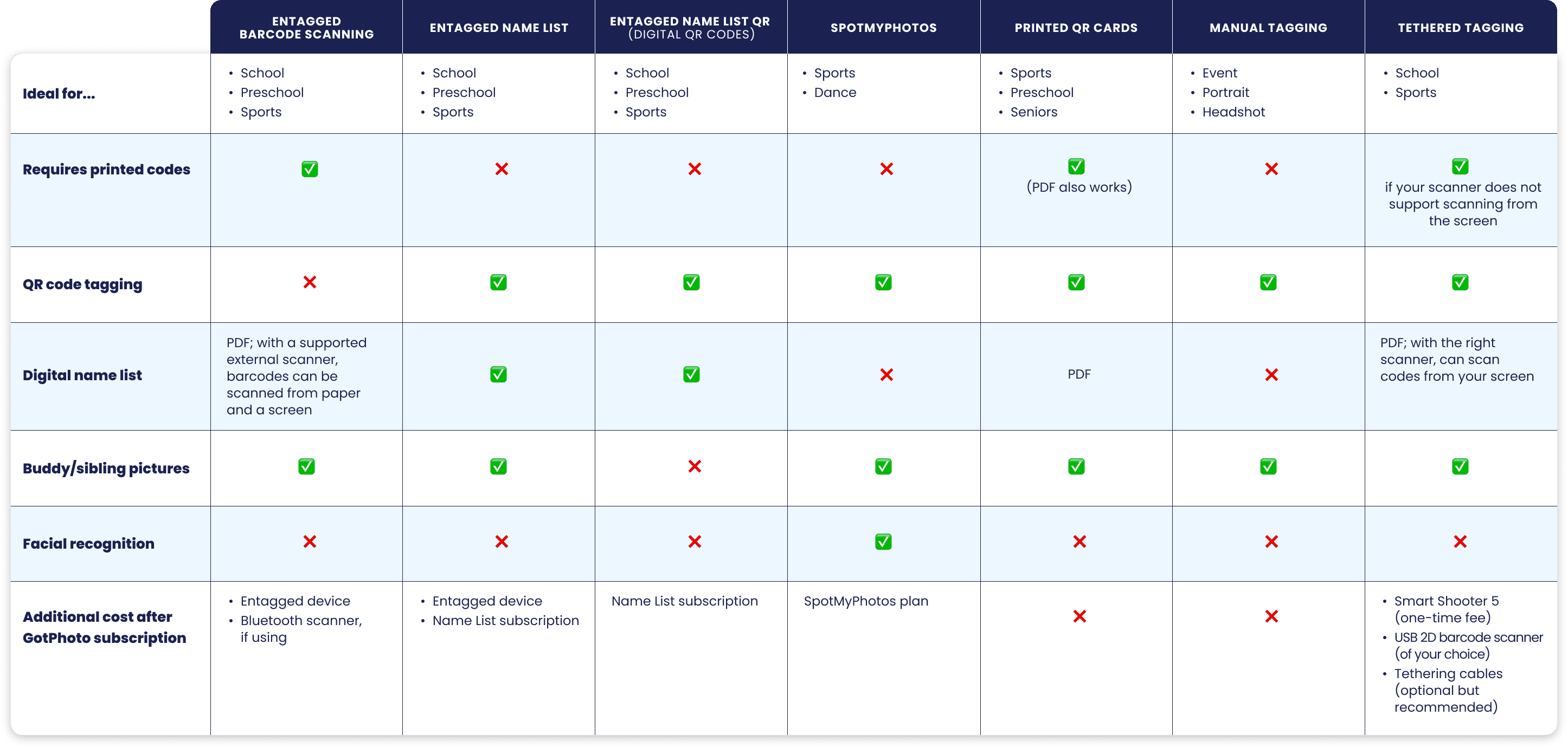 At GotPhoto, we understand that every photography session is unique. That’s why we offer a comprehensive suite of tagging methods to suit any scenario. From QR tagging to tethered tagging and manual input, GotPhoto provides all the tools you need to keep your workflow efficient so you can focus on what matters most—capturing the perfect photo.
